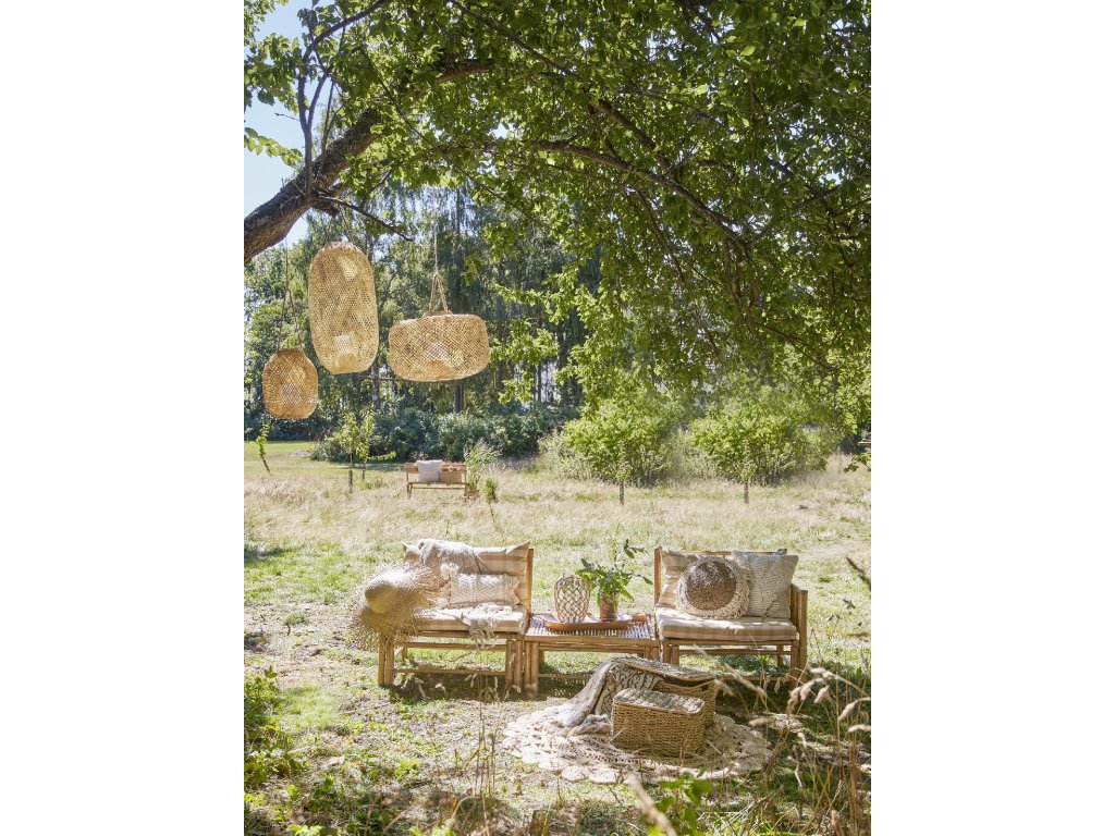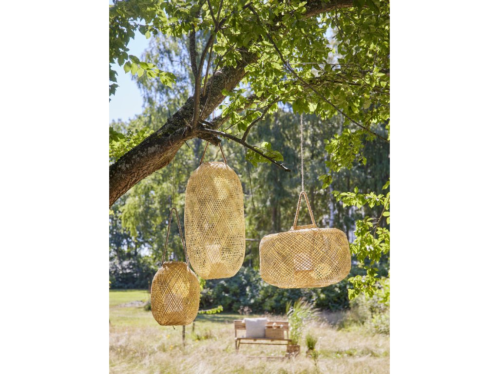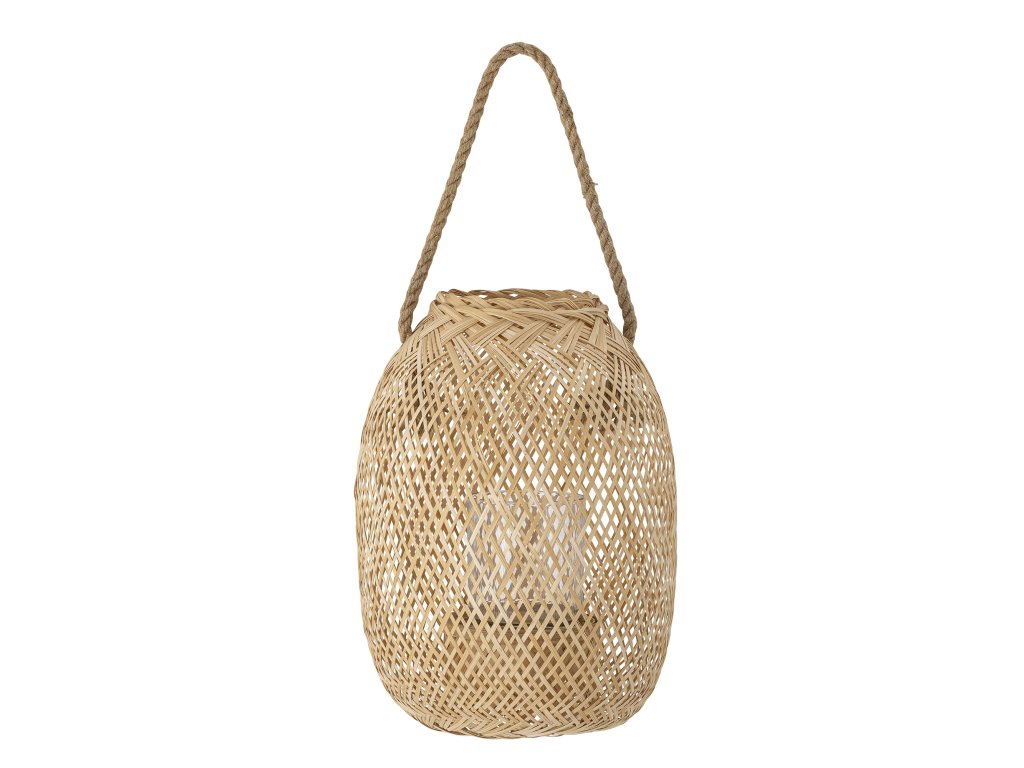 Lucerna Musu se sklem od společnosti Bloomingville je novou a moderní interpretací klasické lucerny. Tento design je vyroben z bambusových provázků a vypleten do krásného tvaru, který krásně rámuje plameny uvnitř a vytváří třpytivý efekt. Uvnitř lucerny je skleněná vložka na svíčky, která chrání plamen před větrem, který by jinak plamen sfoukl. Lucerna je určena k zavěšení ke stropu, na větev apod. do držadla.Doplňkové parametry