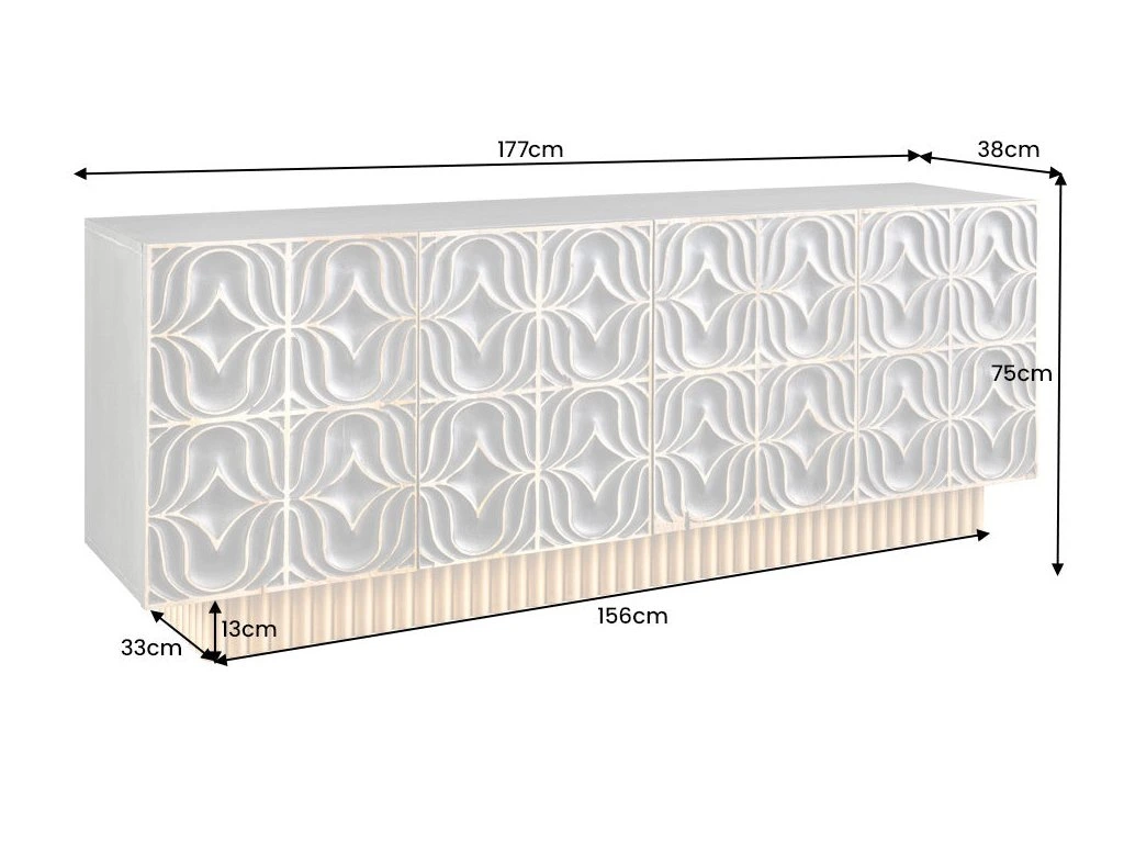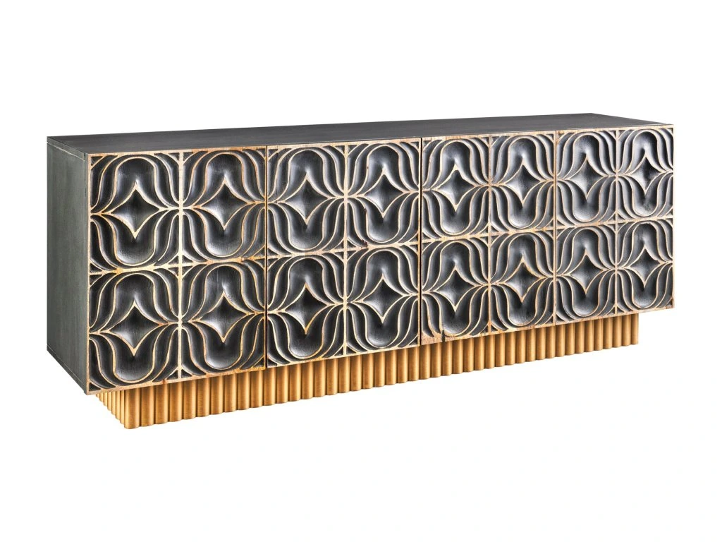 Luxusní komoda z masivu s geometrickým reliéfem a zlatou podnoží