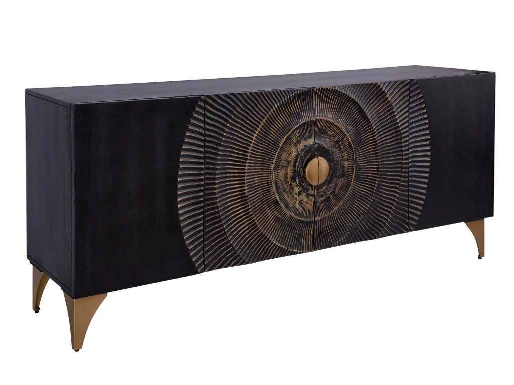 Luxusní komoda z masivu v tmavě hnědé barvě se zlatým reliéfem