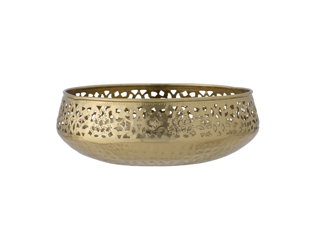 Mísa Aisha Deco Bowl od společnosti Bloomingville je vyrobena z perforovaného kovu s úžasnými detaily v krásné zlaté barvě. Mísa má opravdu pěkné rozměry se spoustou místa na všechno. Naplňte ji vánočními ozdobami, každodenním ovocem nebo ji použijte k servírování.Doplňkové parametry