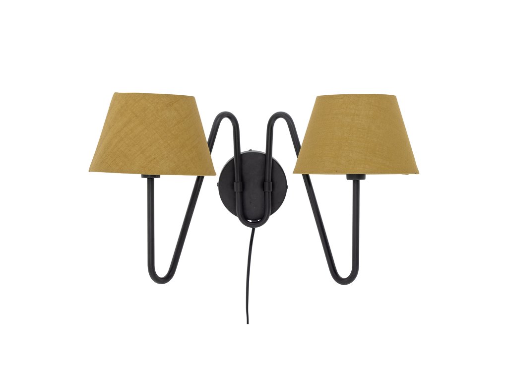 Nástěnná lampa Letty od společnosti Bloomingville je krásná a elegantní dvojitá nástěnná lampa z černého kovu se stínidly v teplé a krásné žluté barvě. Tato lampa dodá hřejivou atmosféru každé místnosti v domácnosti a je ideální pro vytvoření útulného světla.Doplňkové parametry