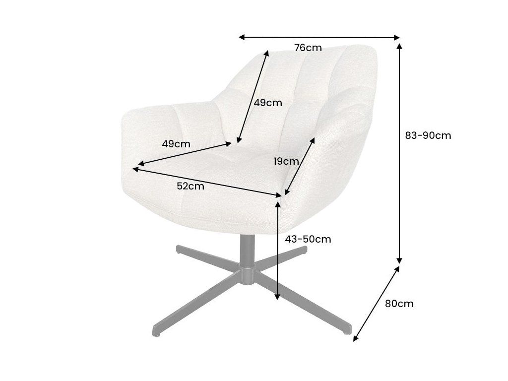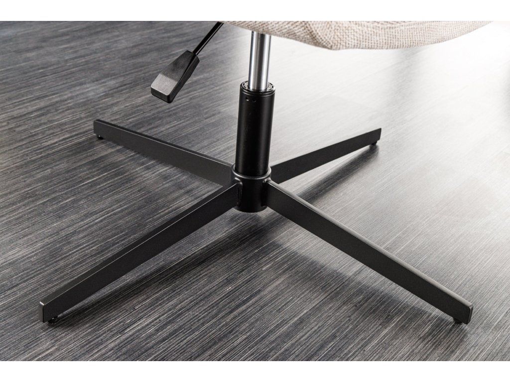 Otočný mechanismus zvyšuje praktičnost křesla a umožňuje snadnou manipulaci v prostoru. Stabilní kovový podstavec v černém provedení zajišťuje pevnost a zároveň vytváří moderní kontrast k jemnému čalounění.