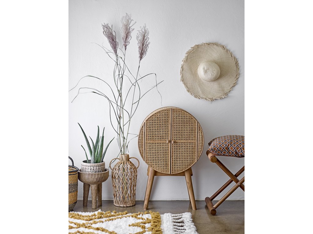 Skříň Otto je vyrobena z ratanu a jedle. Díky netradičnímu kulatému tvaru upoutá pozornost. Skříňka udává severský tón a lze ji stylizovat jak velmi minimalisticky, tak i trochu útulněji.Doplňkové parametry