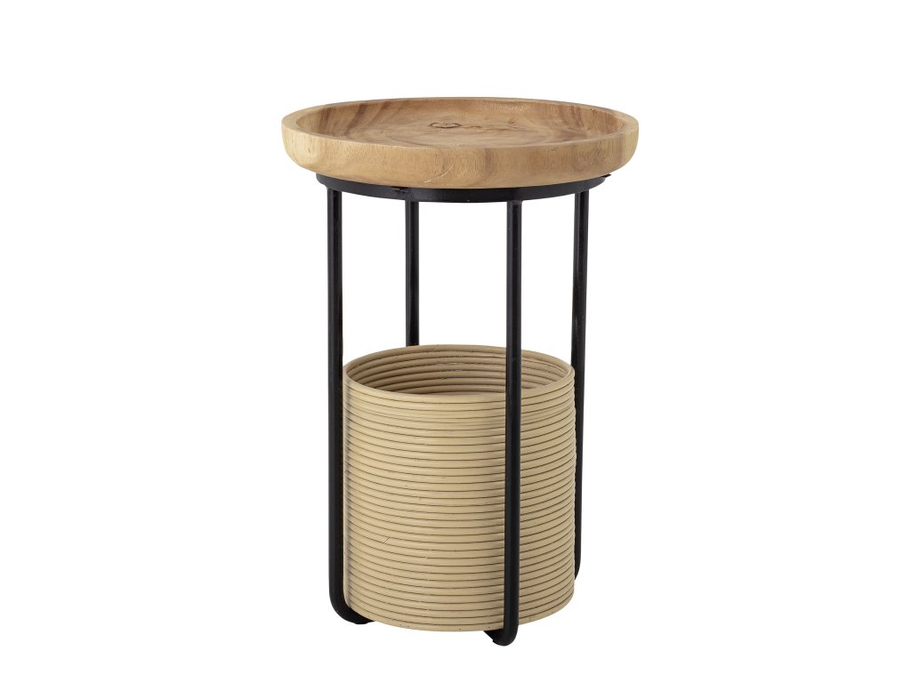 Příruční stolek Hitti od společnosti Bloomingville představuje kombinaci dřeva suar, ratanu a železa. Postranní stolek má malou kruhovou desku a košík pod deskou. Jedná se o autentickou krásu, která přitáhne všechny pohledy.Doplňkové parametry