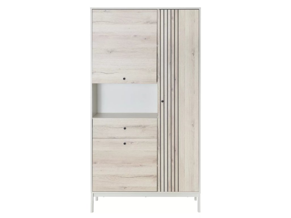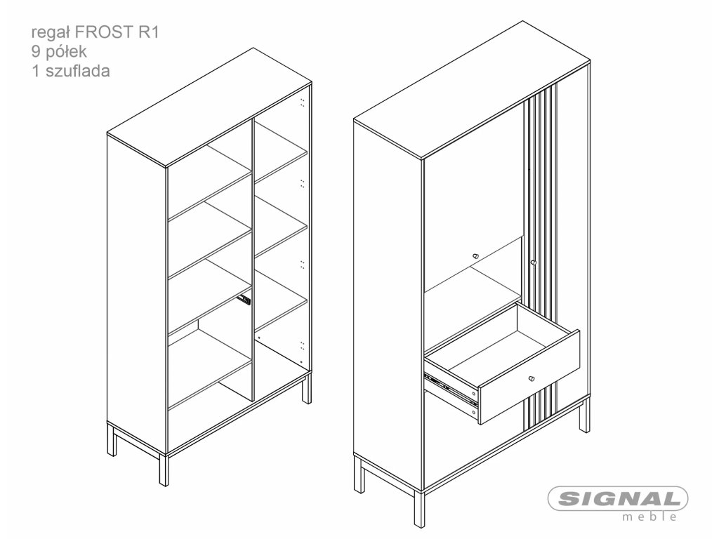 Police, vrchní deska: laminovaná deska, rám: kov, barva: světle bílá + alpský dub / světle bílá.