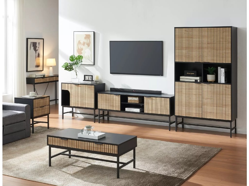 Police, vrchní deska: laminovaná deska, rám: kov, barva: dub + matná černá / černá.