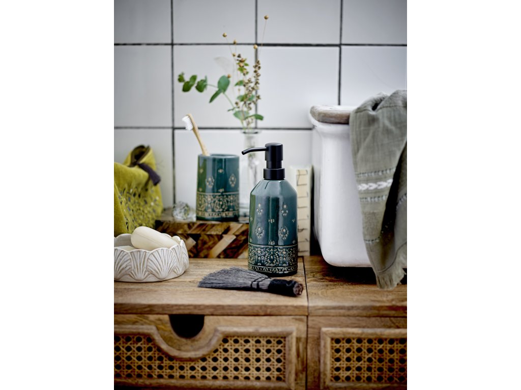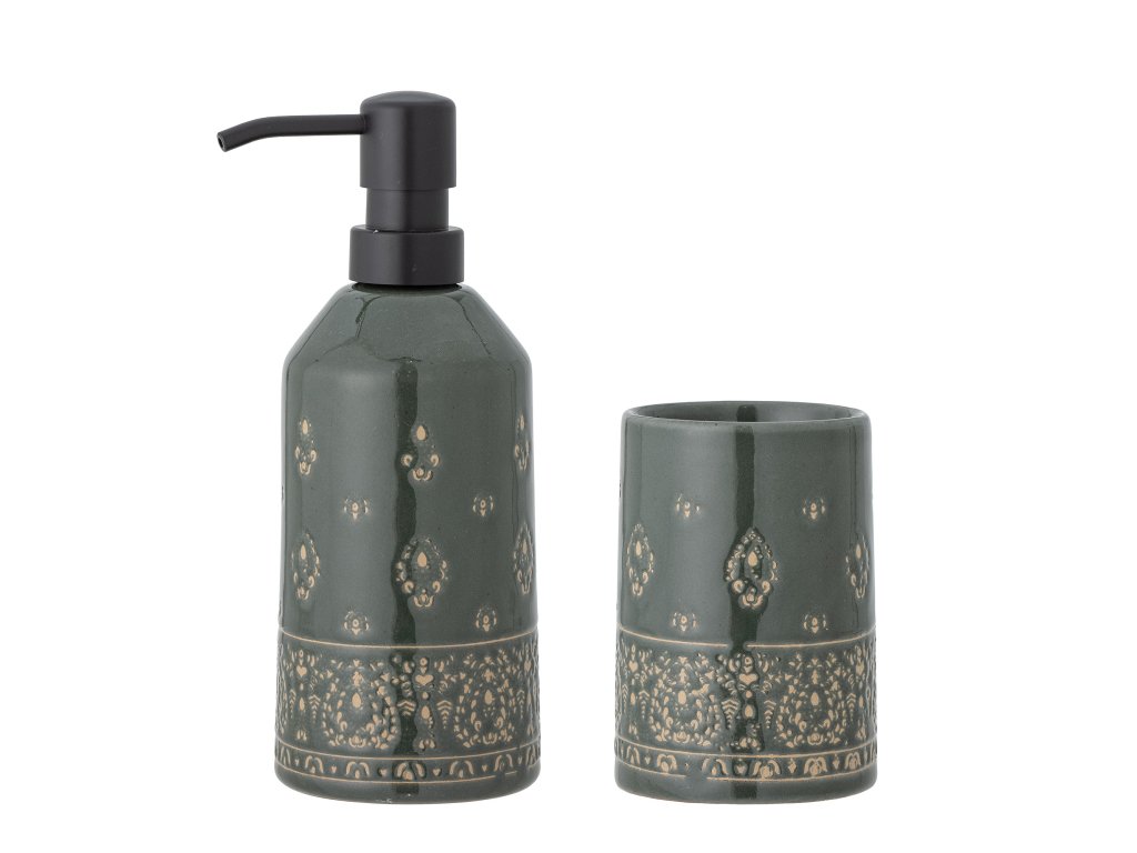 Zelená sada dávkovačů mýdla Cheran z kameniny je stylovým a praktickým doplňkem do interiéru.