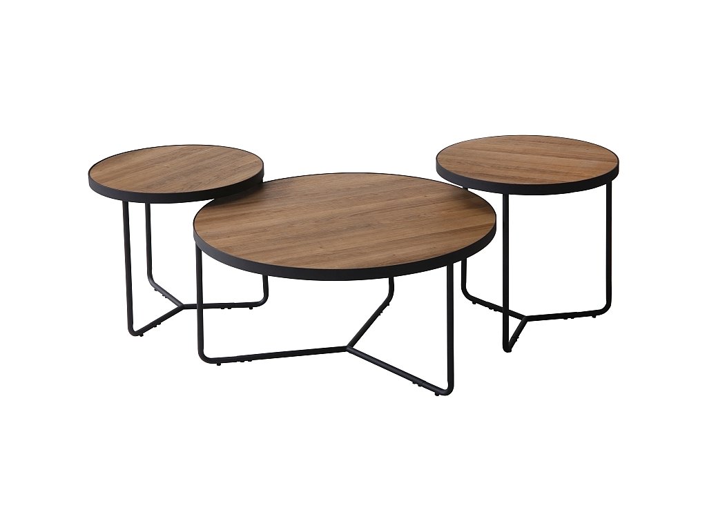 Sada konferenčních stolků Silo – 3 ks ořech / černá kovová podnož