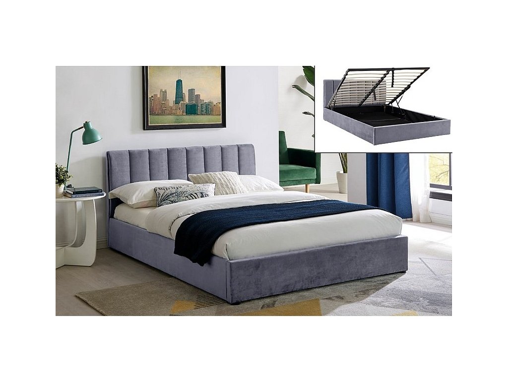 Sametová postel MONTREAL - 160 cm Šedá