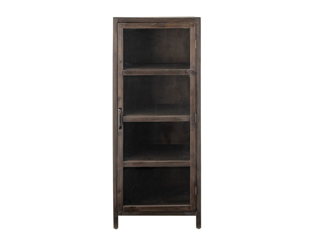 Skříň Marl od Creative Collection je krásný úložný nábytek s hřejivým vintage výrazem. Skříňka je vyrobena z borovicového dřeva v tmavé barvě dřeva, která se krásně kombinuje se skleněnými dvířky. Čtyři police skříně zajišťují optimální úložný prostor pro nádobí, knihy, vázy a další oblíbené předměty.Doplňkové parametry
