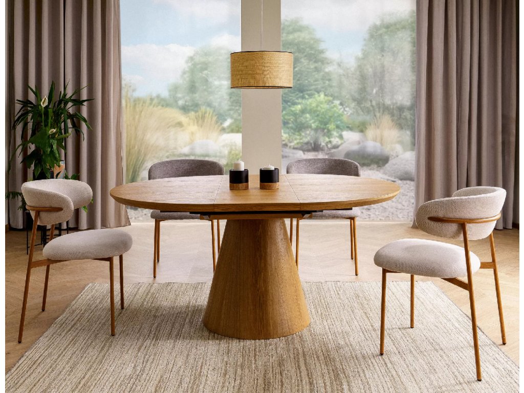 Kulatý rozkládací jídelní stůl Anděl II 160 cm – přírodní dub