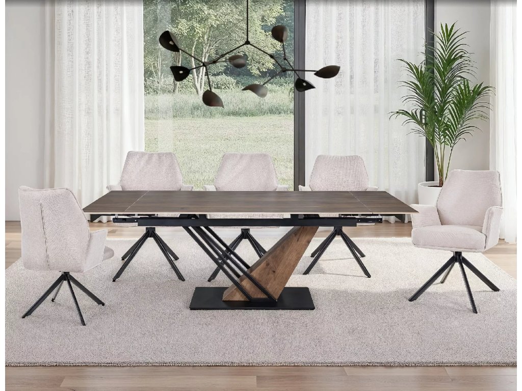 Jídelní stůl Ironwood – keramický / dubový dekor (160–240 cm)
