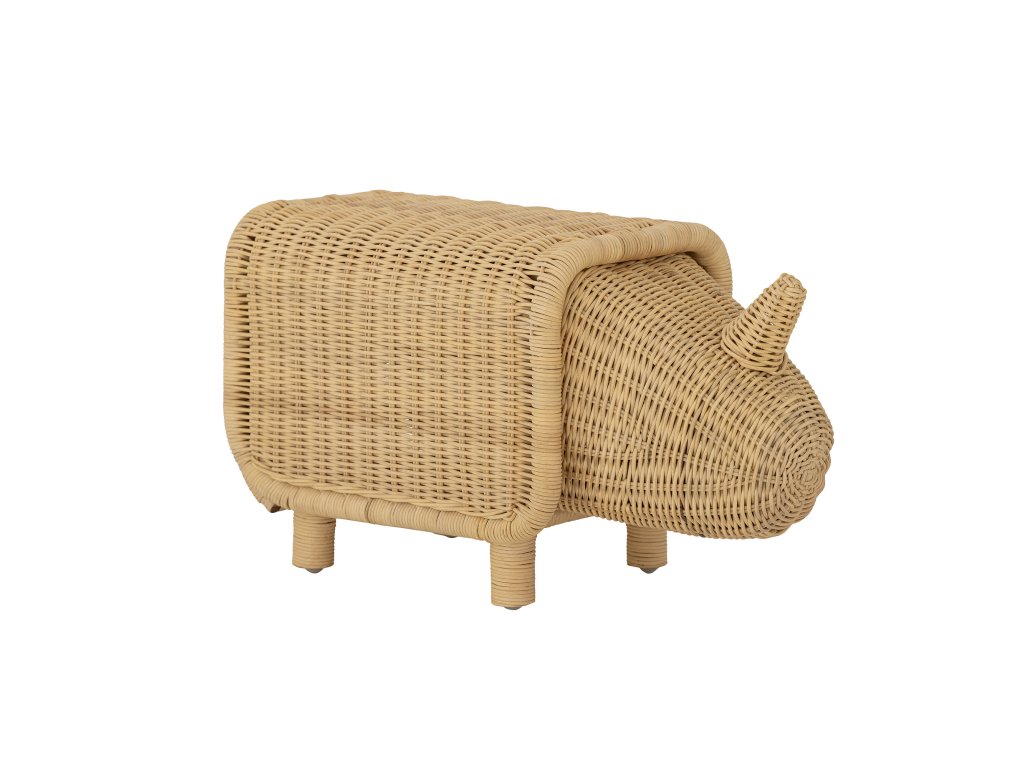 Stolička Soffe s úložným prostorem od Bloomingville MINI je roztomilá malá lavička z ratanu s hlavou a ocasem. Otevřete ocas a uložte do něj všechny své oblíbené hračky. Multifunkční nosorožec je ideální jak pro dekoraci, tak pro ukládání a hraní v obývacím pokoji nebo v dětském pokoji.Doplňkové parametry