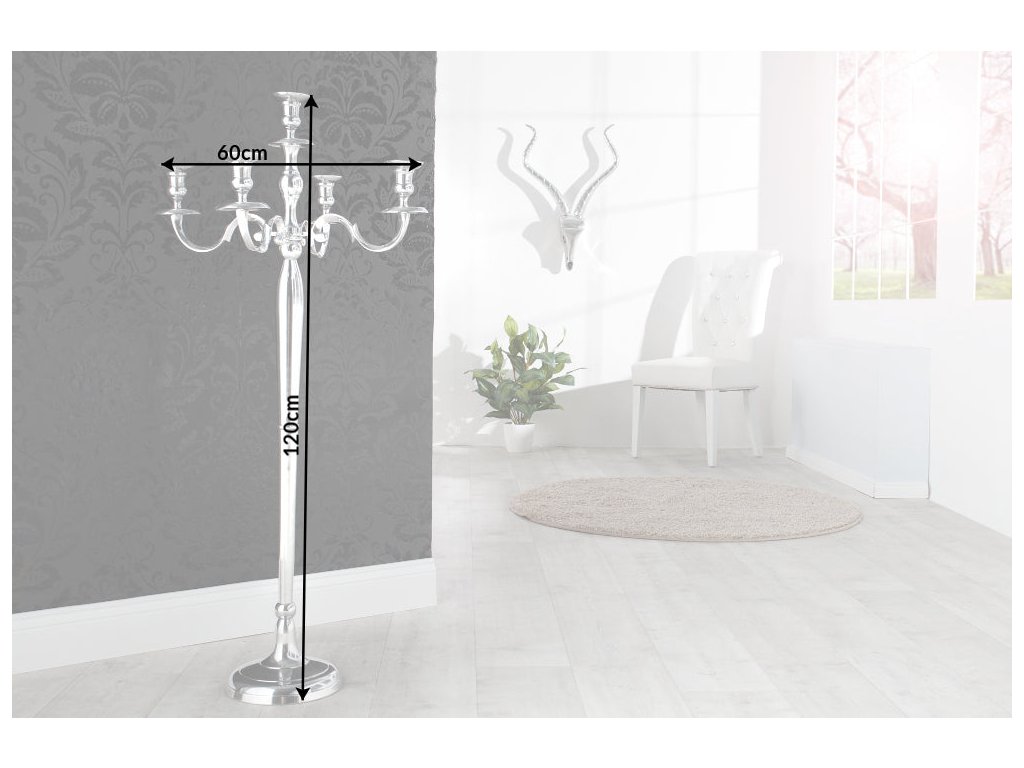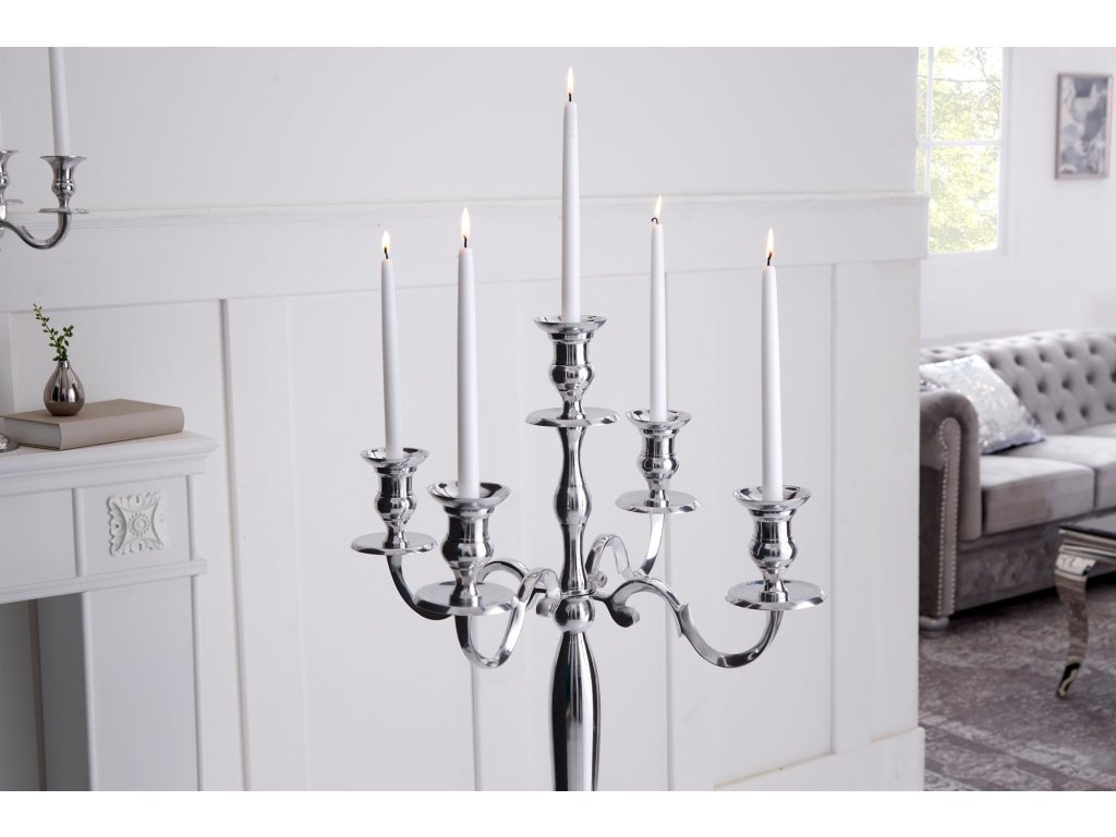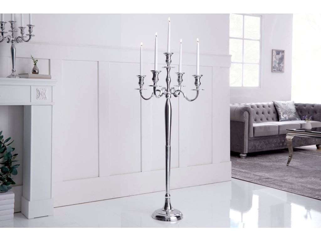 Svícen MODERN BAROCK 120cm 5ramenný stříbrný