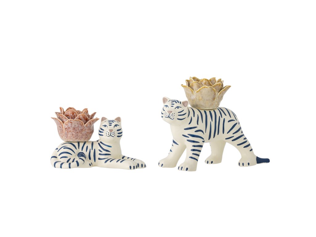 Svícen Rory od společnosti Bloomingville je sada dvou svícnů ve tvaru tygra. Nechte tuto krásnou sadu ozdobit vaše okno nebo stůl a získejte okouzlující doplněk k vašemu interiéru. Svícny jsou ručně malované, což může mít za následek barevné odchylky.Doplňkové parametry