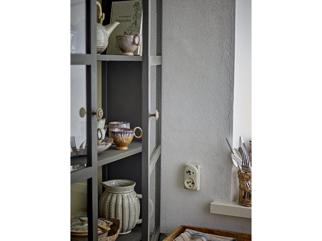 Skříňka Tone od společnosti Bloomingville je jedinečná skříňka se skleněnými dvířky a dvěma policemi. Skříňka je ideální pro vás, kteří si chcete vystavit své oblíbené nádobí nebo jiné dekorativní předměty, bude to pěkný detail do domácnosti. Může stát na zemi i být zavěšena na stěně.Doplňkové parametry