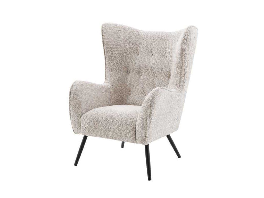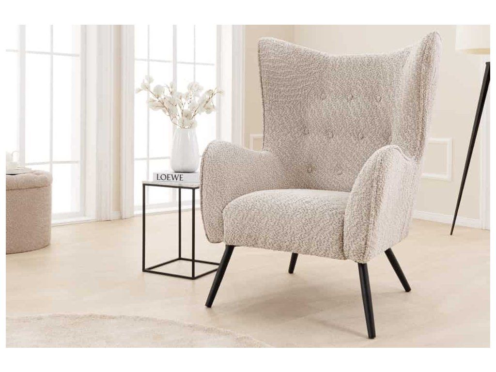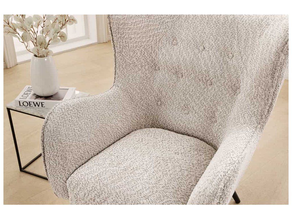 Křeslo je čalouněné kvalitní látkou typu bouclé, která je měkká na dotek a vytváří útulný dojem. Pokud přemýšlíte, zda je ušák vhodný na delší sezení, odpověď je ano – hlubší sedák a tvarované opěradlo poskytují dostatek pohodlí pro relaxaci, čtení i odpočinek.