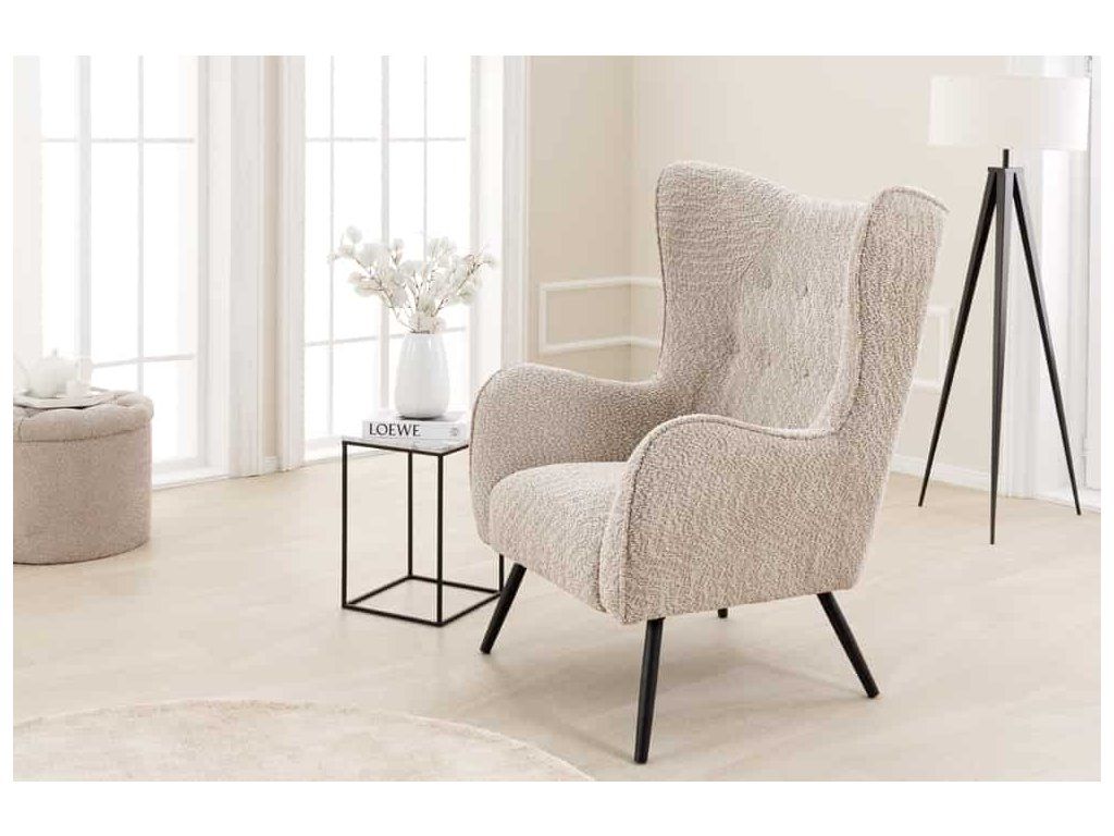 Stylové ušák křeslo v béžovém provedení je ideální volbou pro všechny, kteří hledají kombinaci pohodlí a nadčasového designu. Typické vysoké opěradlo s bočními „uši“ poskytuje příjemné opření a zároveň dodává křeslu charakteristický vzhled.