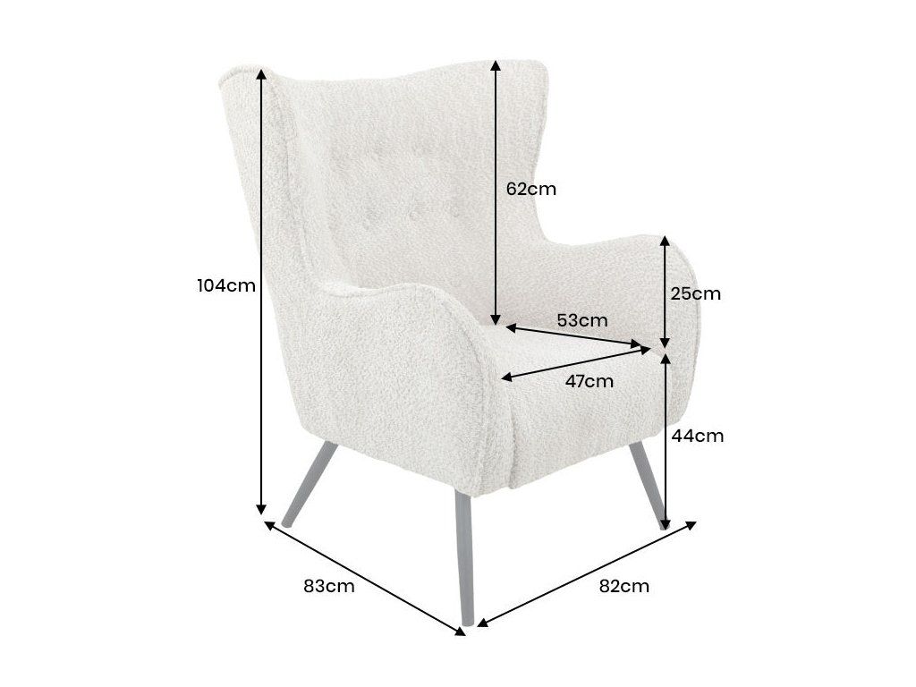 Stabilní konstrukce je doplněna černými nožkami, které dodávají křeslu moderní kontrast a zároveň zajišťují pevnost. Díky svému designu se hodí do obývacího pokoje, ložnice i pracovny, kde vytvoří ideální místo pro klid a pohodu.