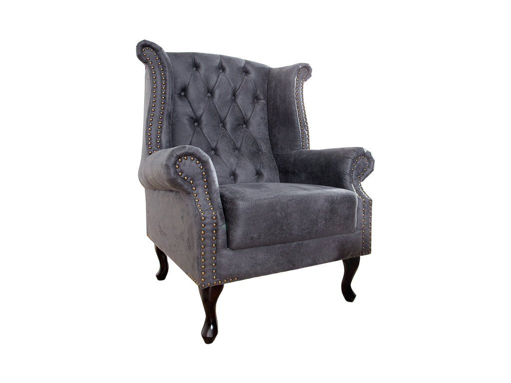 Masivní konstrukce je doplněna elegantními dřevěnými nohami, které podtrhují klasický vzhled křesla. Díky neutrální šedé barvě se snadno kombinuje s moderním i tradičním interiérem a působí velmi nadčasově.