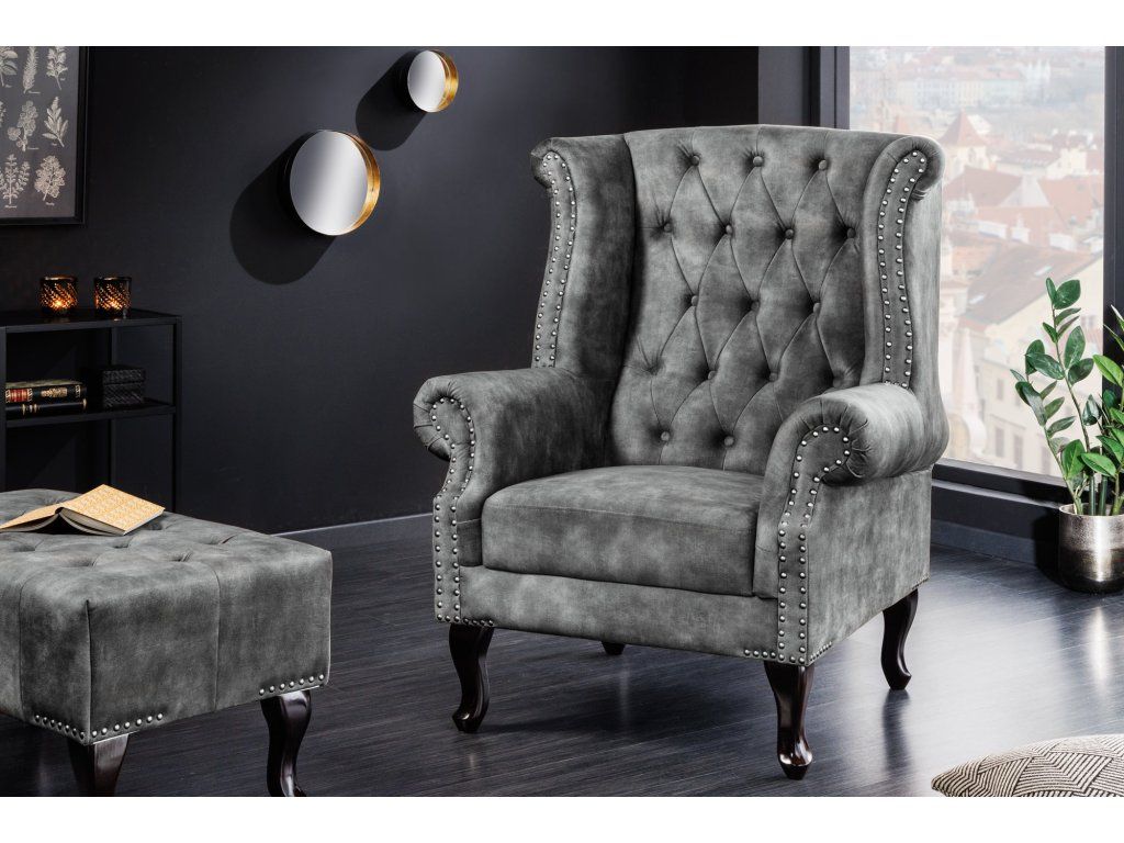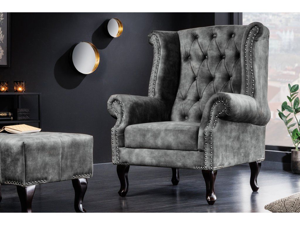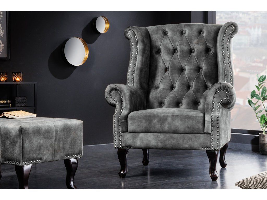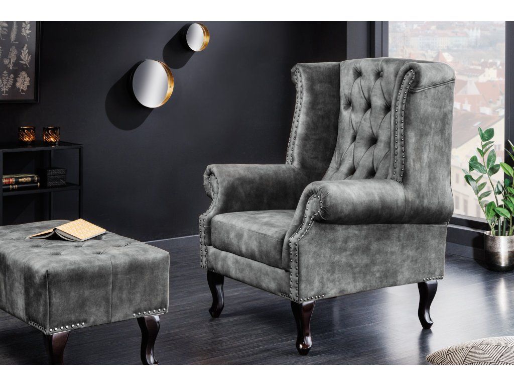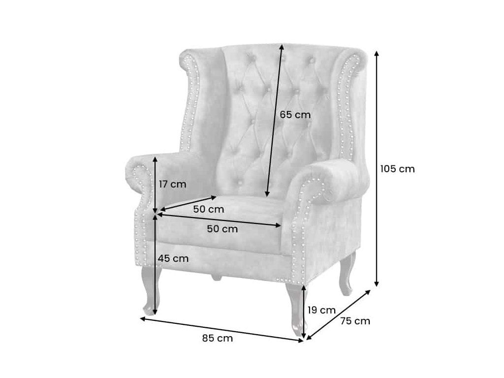 Stylové ušák křeslo v chesterfield provedení zaujme na první pohled svým výrazným prošíváním s knoflíky a ozdobnými hřebíčky, které dodávají křeslu luxusní a nadčasový vzhled. Vysoké opěradlo s typickými bočními „uši“ vytváří pohodlné a útulné místo pro odpočinek.
