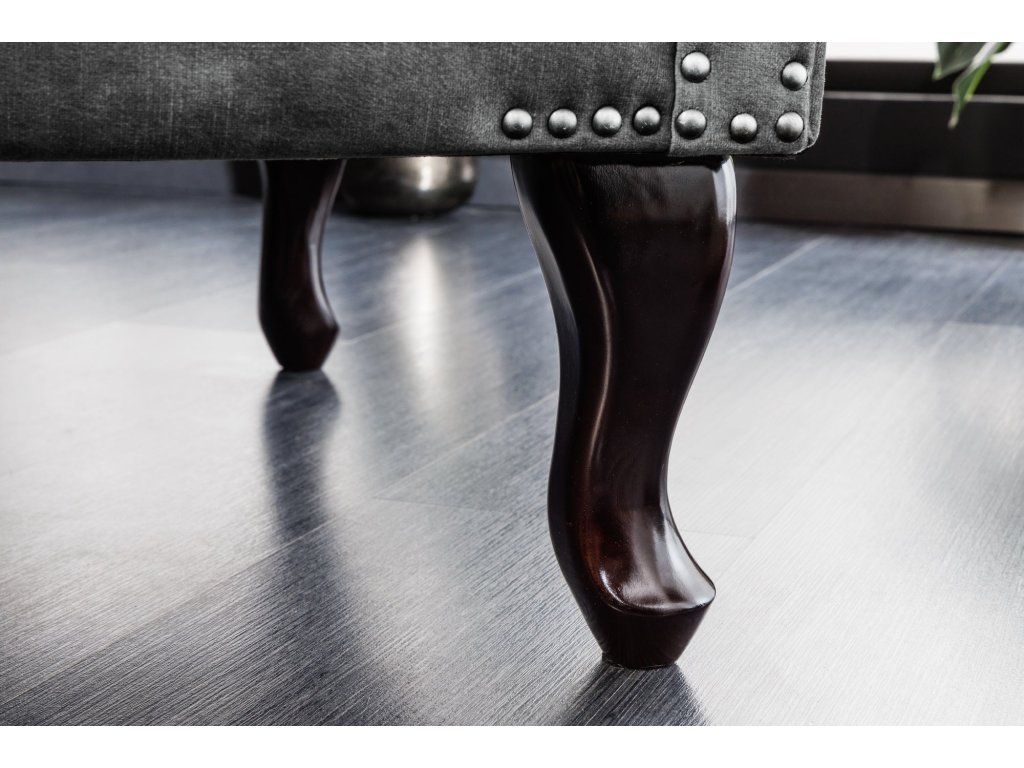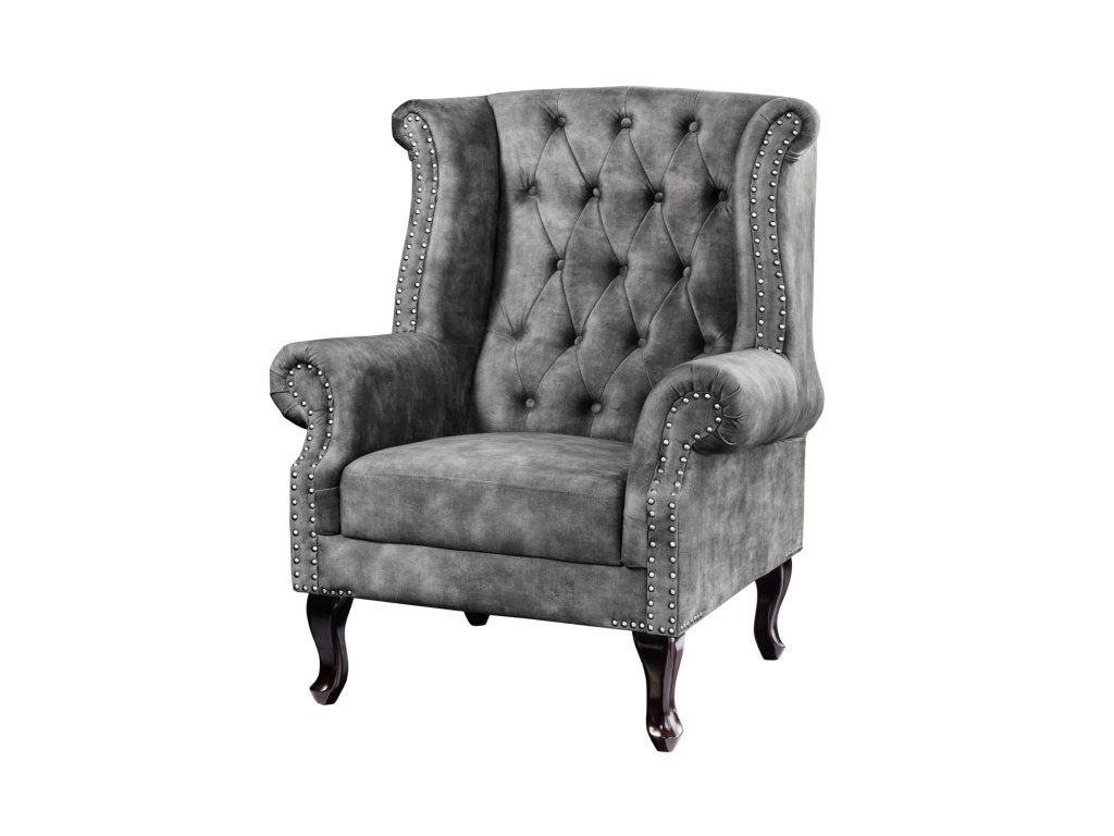 Masivní konstrukce je doplněna stylovými dřevěnými nohami, které podtrhují klasický charakter křesla. Díky svému designu se hodí nejen do moderních interiérů, ale i do tradičně laděných prostor, kde vynikne jako dominantní prvek.