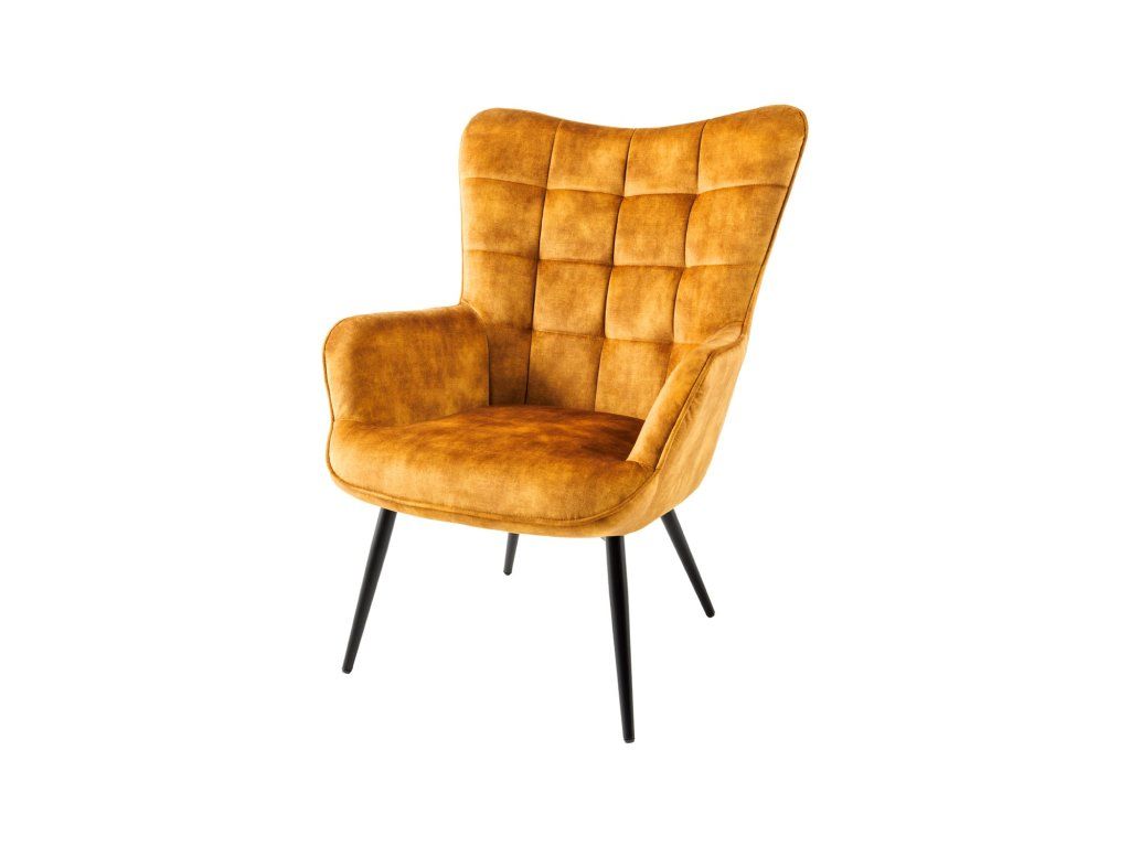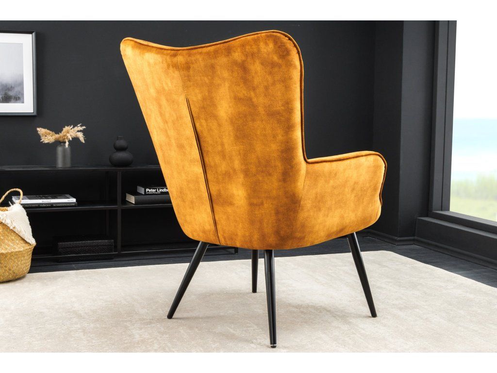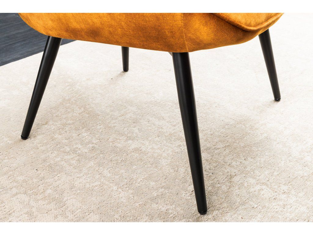 Černé kovové nohy dodávají křeslu moderní kontrast a zajišťují stabilitu. Díky výrazné barvě se křeslo stane dominantním prvkem obývacího pokoje, ale skvěle se hodí i do pracovny nebo ložnice.