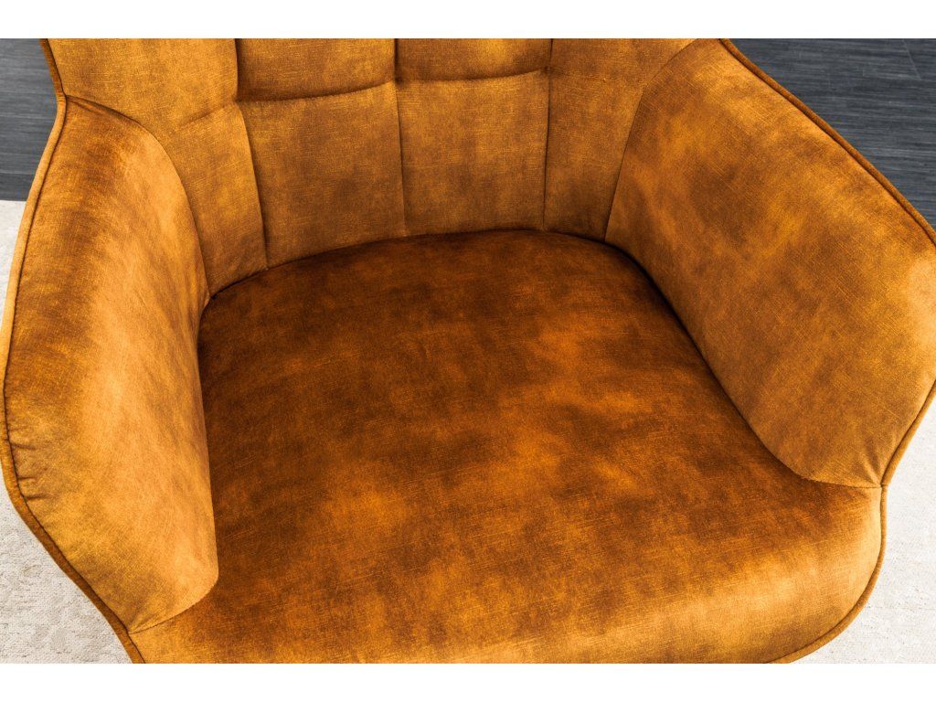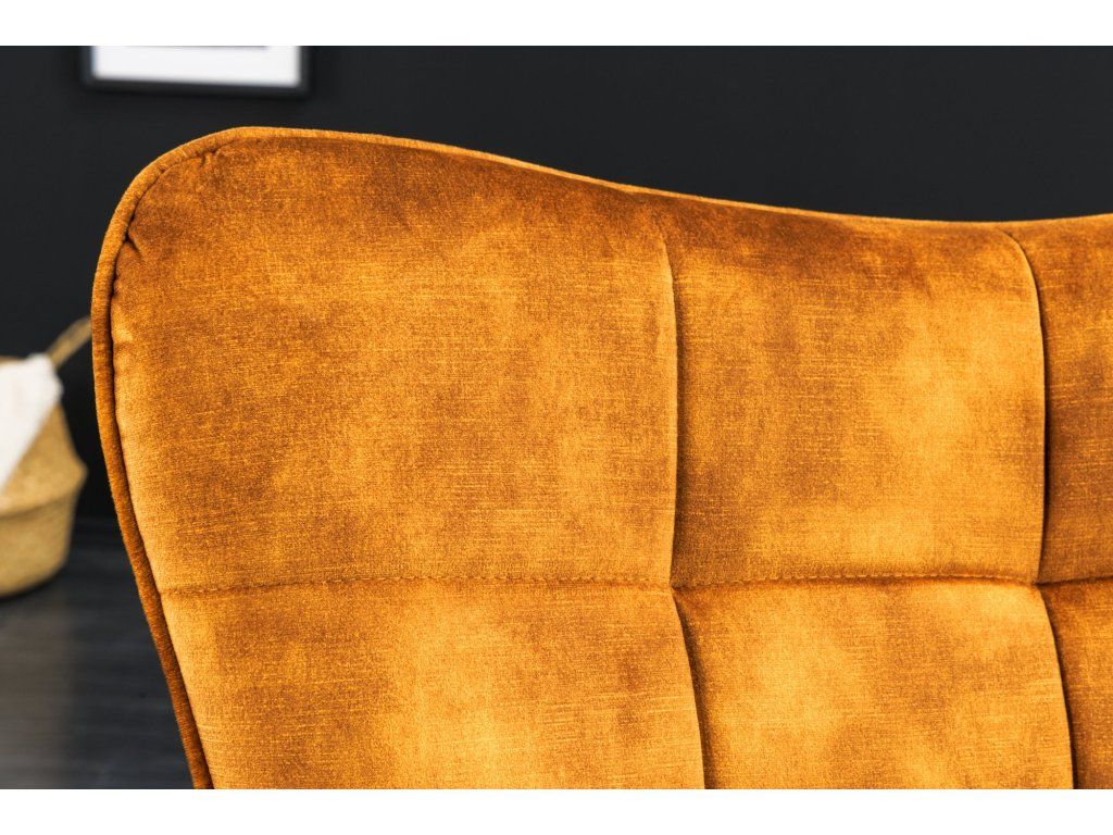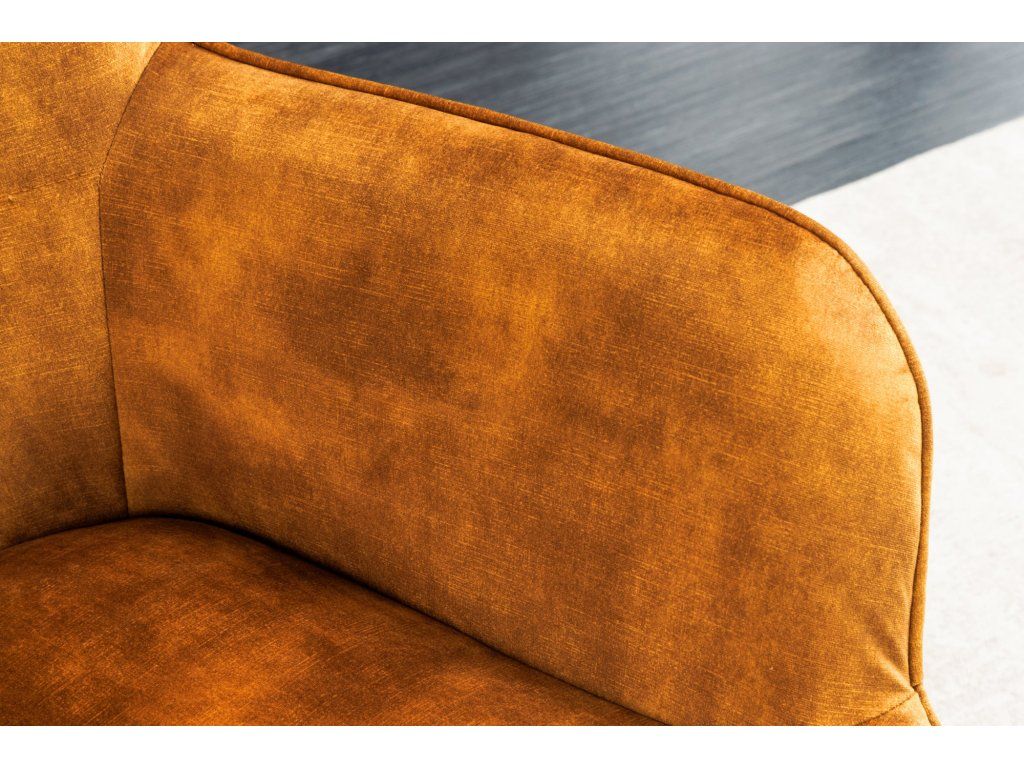 Křeslo je potaženo kvalitní sametovou látkou, která je hebká na dotek a zároveň působí velmi luxusně. Pokud hledáte křeslo, které bude nejen pohodlné, ale i vizuálně výrazné, tento model je ideální – měkký sedák a tvarované opěradlo poskytují dostatek komfortu při každodenním používání.
