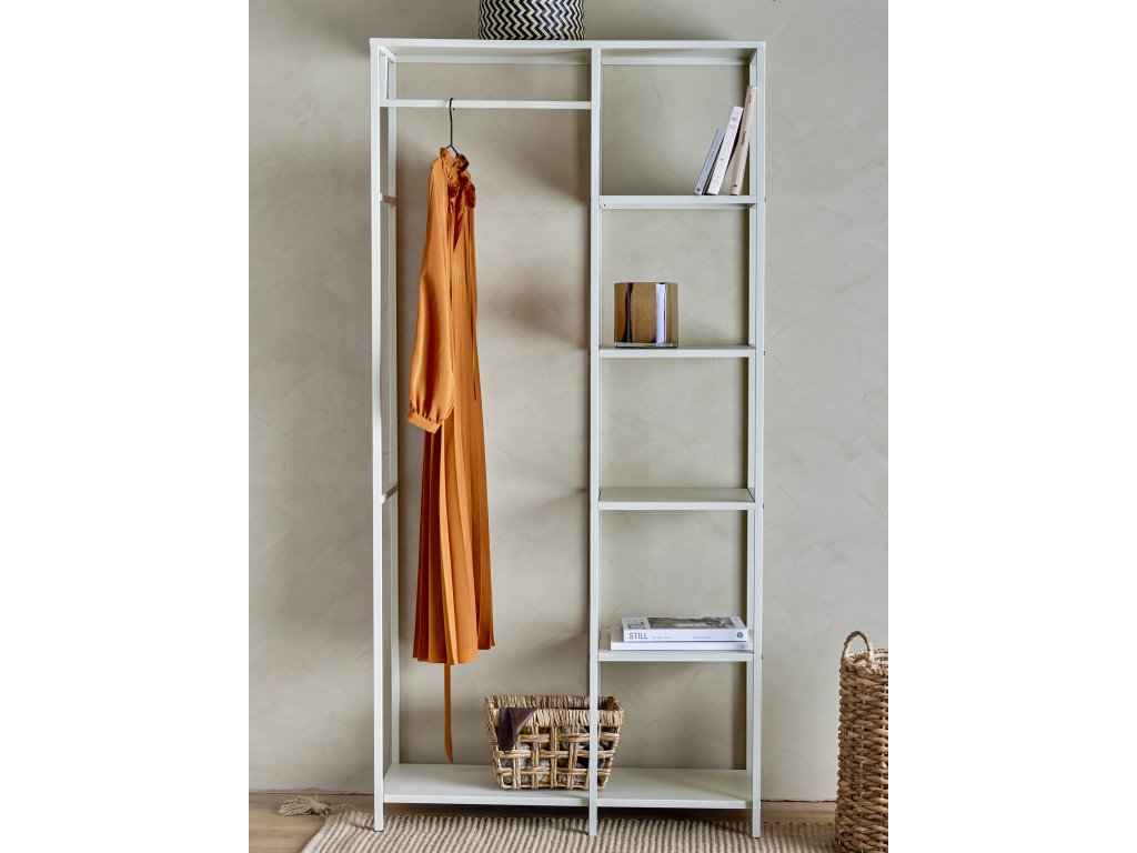 Věšák na oblečení Valde od společnosti Bloomingville je ideálním řešením pro vytvoření moderního šatníku. Je vyroben z kovu v krásném šedém odstínu a bez problémů zapadne do každé domácnosti. Díky praktické tyči na zavěšení oblečení a pěti pevným policím nabízí dostatek úložných možností. Rozteč 33 cm mezi jednotlivými policemi poskytuje prostor pro vše od bot a složeného oblečení až po dekorativní předměty.Doplňkové parametry