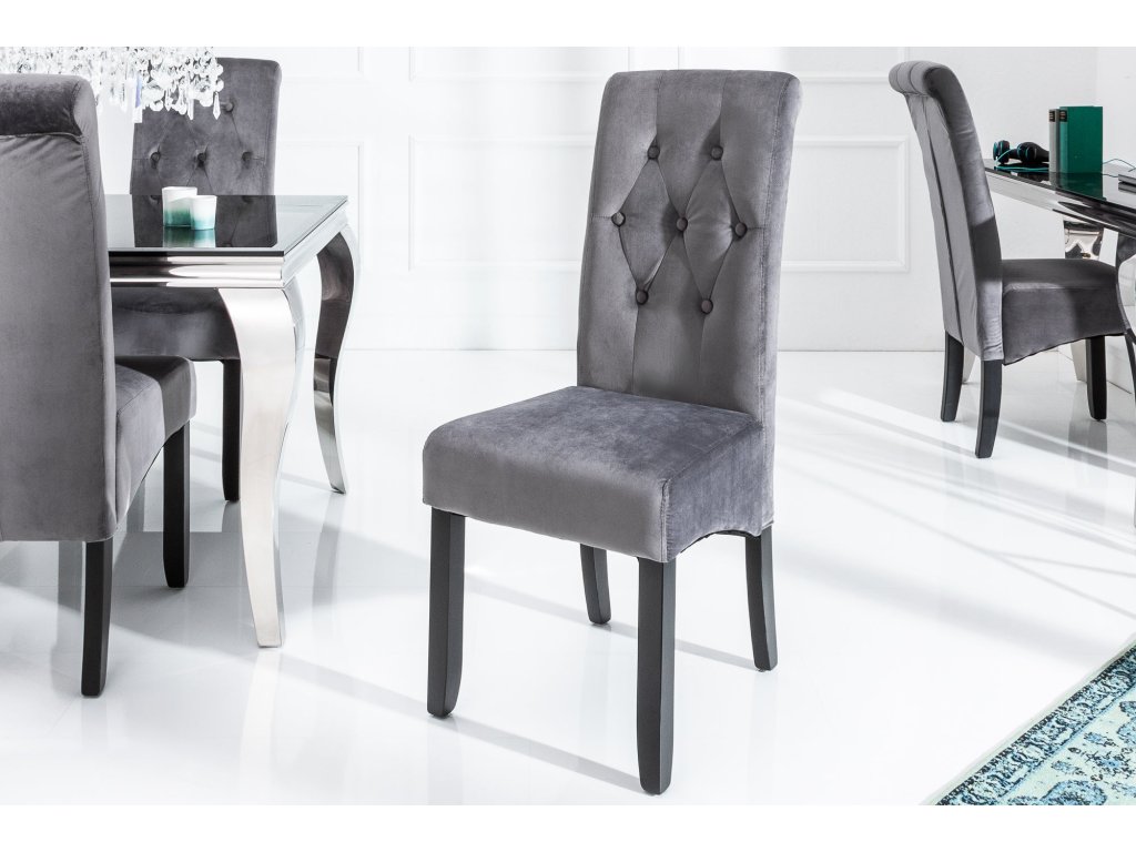 Dominantní barva sedáku: šedá dodá prostoru příjemný výraz a dobře se kombinuje s přírodními i kontrastními tóny. Design odpovídá stylu designový, moderní, takže židle dobře zapadne do současných domácností i modernějších provozů. Povrch sedáku z materiálu samet je příjemný na dotek a při běžném používání praktický na údržbu. Konstrukce s nohami z masivní dřevo přidává stabilitu a pevný posed. Židle je bez područek, díky čemuž se snadno zasune pod stůl a šetří místo u jídelního setu.
