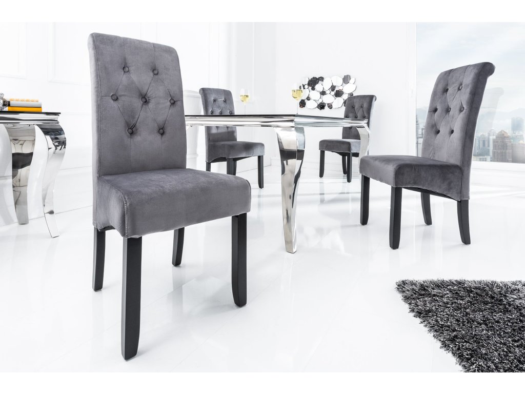 Jídelní židle Kora Soft – sametová, šedá spojuje pohodlí při sezení a čistý vzhled, který se snadno kombinuje s jídelním stolem i okolním interiérem.