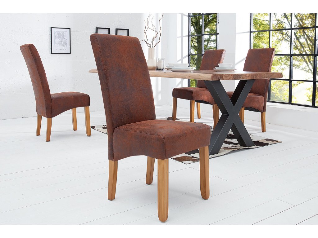 Design odpovídá stylu retro, moderní, takže židle dobře zapadne do současných domácností i modernějších provozů. Povrch sedáku z materiálu mikrovlákno je příjemný na dotek a při běžném používání praktický na údržbu. Konstrukce s nohami z masivní dřevo přidává stabilitu a pevný posed. Židle je bez područek, díky čemuž se snadno zasune pod stůl a šetří místo u jídelního setu.