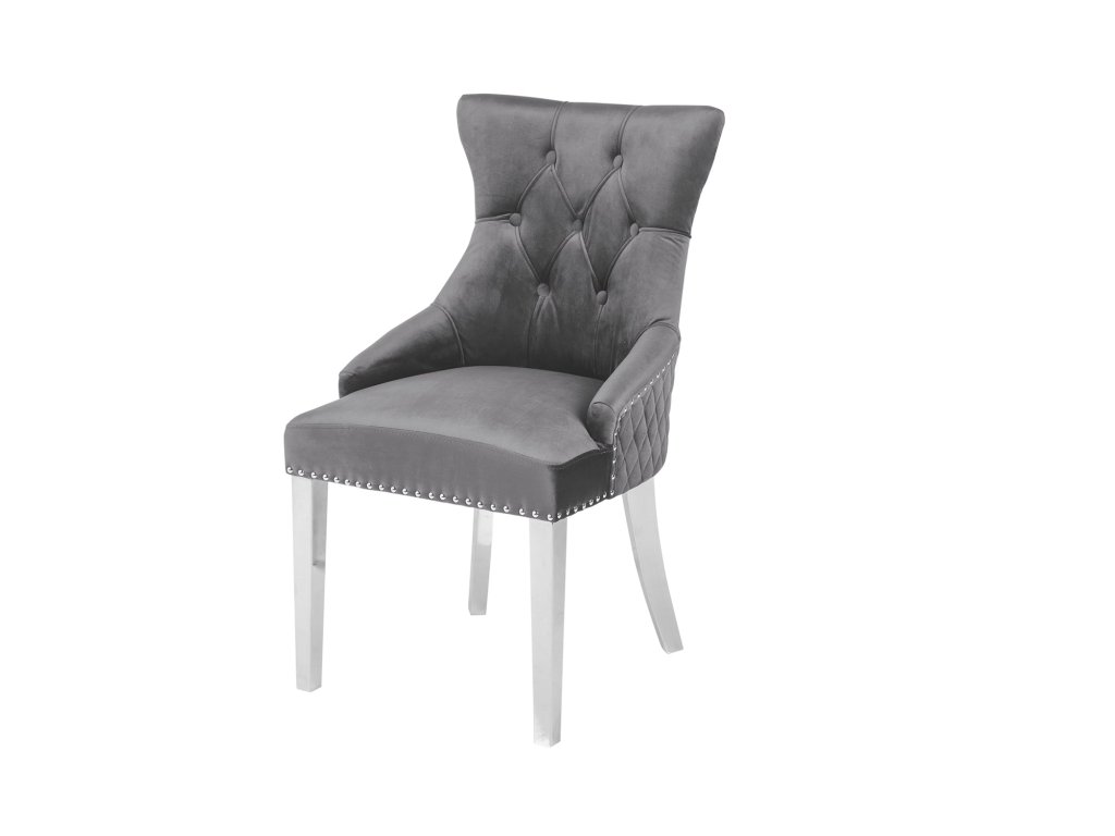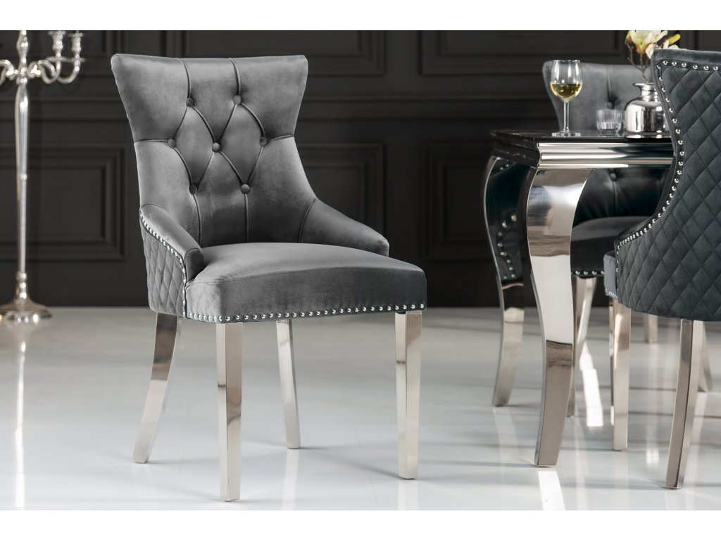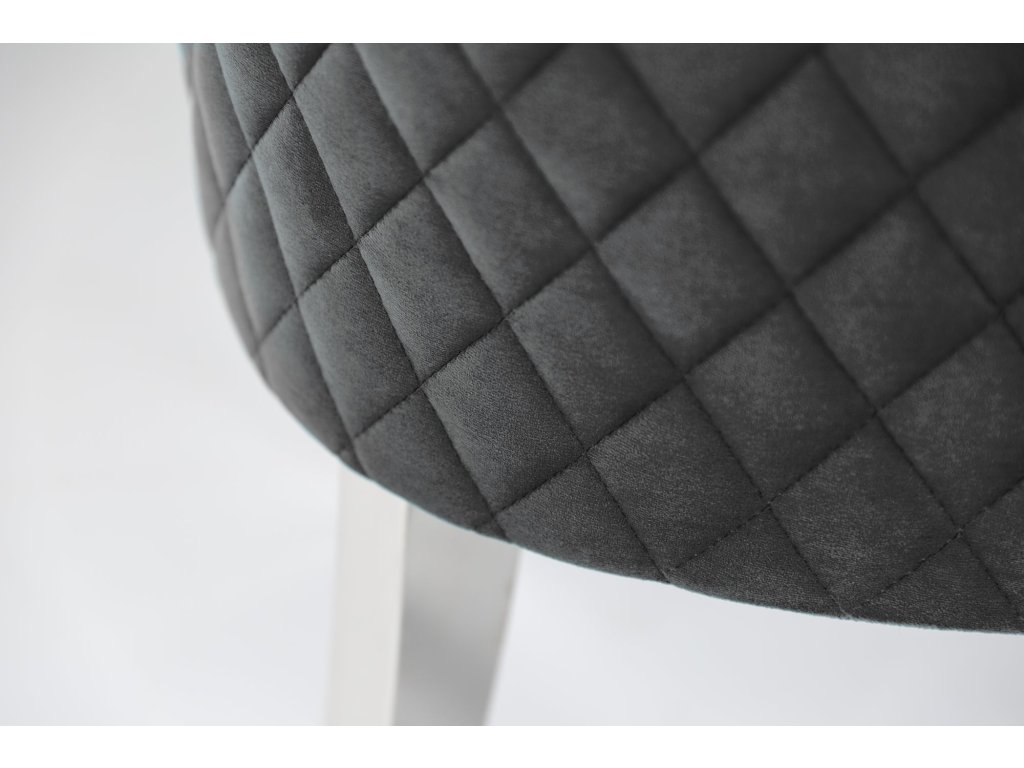 Dominantní barva sedáku: šedá dodá prostoru příjemný výraz a dobře se kombinuje s přírodními i kontrastními tóny. Design odpovídá stylu designový, moderní, takže židle dobře zapadne do současných domácností i modernějších provozů. Povrch sedáku z materiálu samet je příjemný na dotek a při běžném používání praktický na údržbu. Konstrukce s nohami z nerez přidává stabilitu a pevný posed. Židle je bez područek, díky čemuž se snadno zasune pod stůl a šetří místo u jídelního setu.