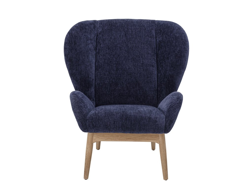 Toto nové tmavě modré křeslo je velmi pohodlné - při sezení v něm máte téměř pocit, že jste v objetí. Židle je navržena s chladným detailem na zadní straně, kde nohy jako by podpíraly opěradlo. Látka je z měkkého a pevného materiálu Chenile, s vlnkovanou strukturou a odolností 15 000 martindale.Doplňkové parametry