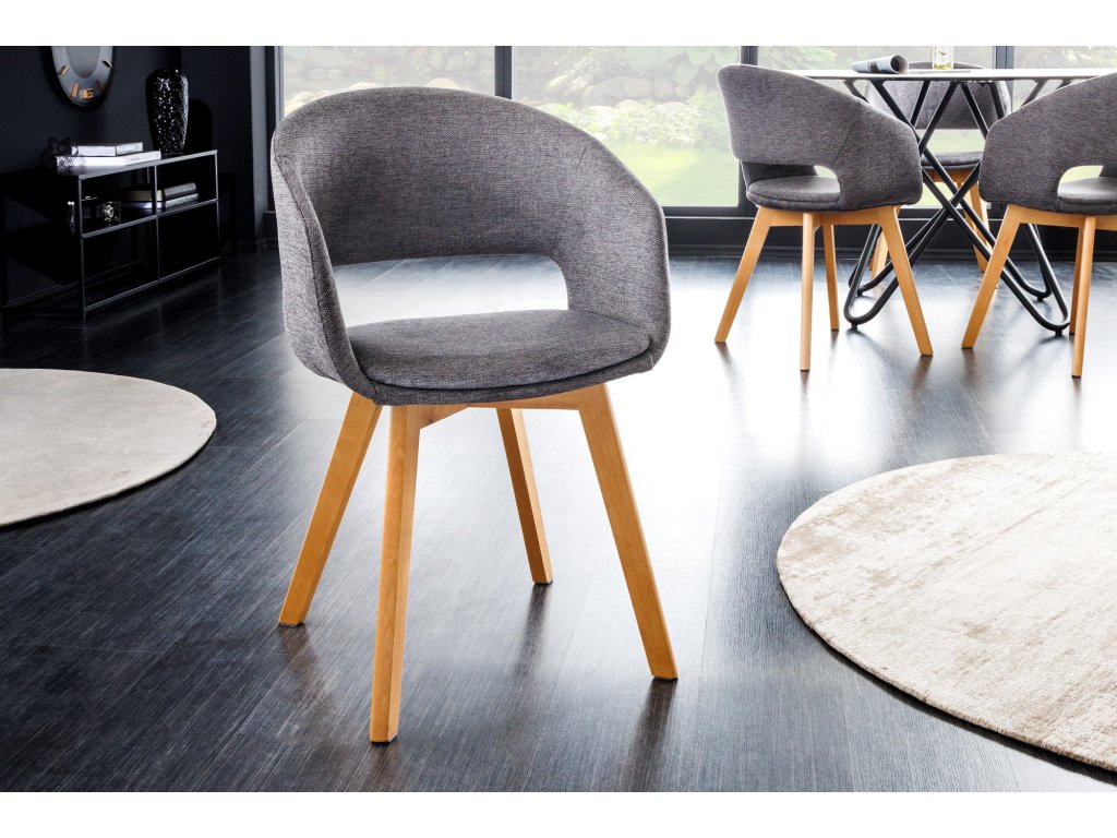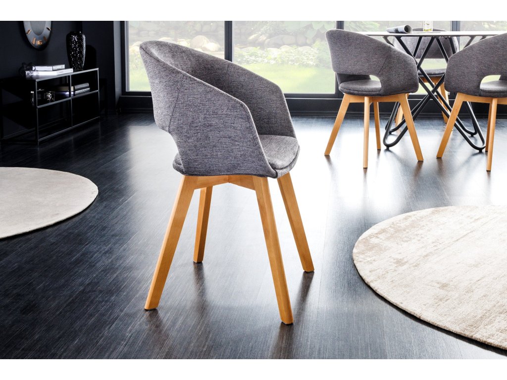Dominantní barva sedáku: šedá dodá prostoru příjemný výraz a dobře se kombinuje s přírodními i kontrastními tóny. Design odpovídá stylu moderní, takže židle dobře zapadne do současných domácností i modernějších provozů. Povrch sedáku z materiálu nan je příjemný na dotek a při běžném používání praktický na údržbu. Konstrukce s nohami z nan přidává stabilitu a pevný posed. Židle je bez područek, díky čemuž se snadno zasune pod stůl a šetří místo u jídelního setu.