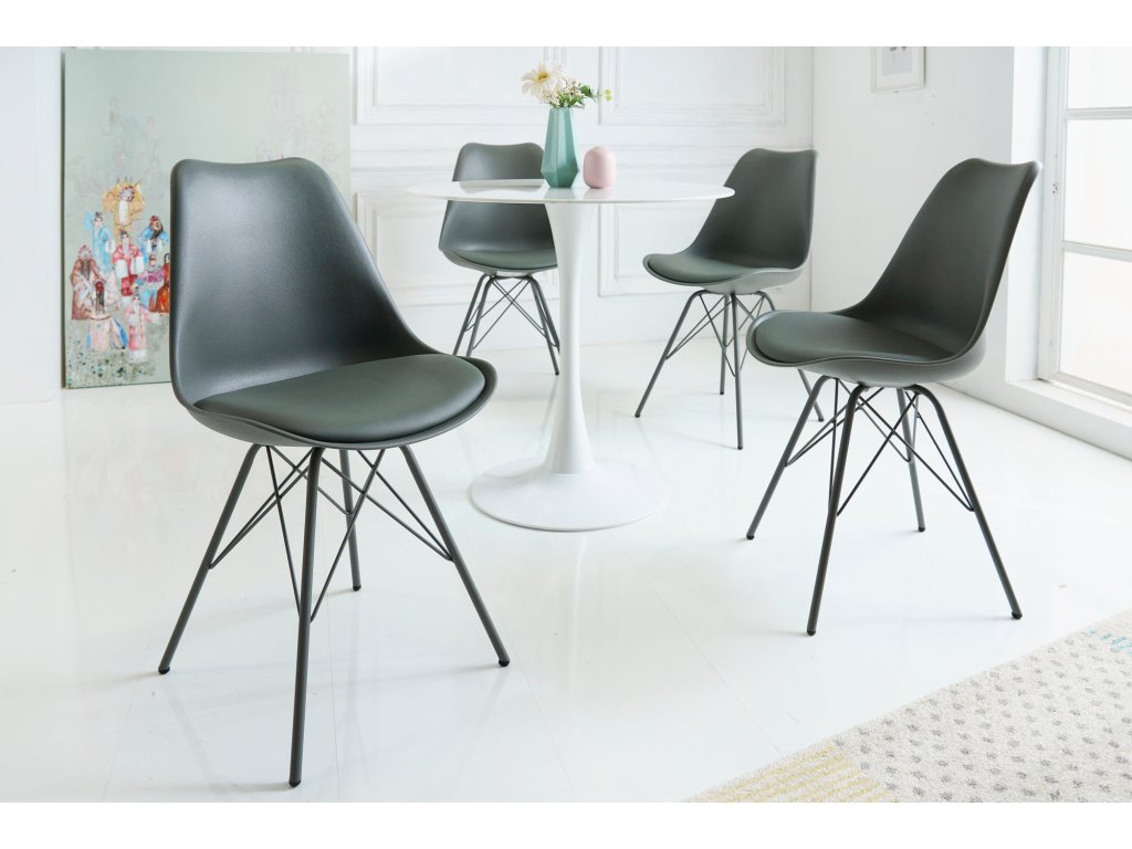 Dominantní barva sedáku: šedá dodá prostoru příjemný výraz a dobře se kombinuje s přírodními i kontrastními tóny. Design odpovídá stylu moderní, takže židle dobře zapadne do současných domácností i modernějších provozů. Povrch sedáku z materiálu nan je příjemný na dotek a při běžném používání praktický na údržbu. Konstrukce s nohami z nan přidává stabilitu a pevný posed. Židle je bez područek, díky čemuž se snadno zasune pod stůl a šetří místo u jídelního setu.