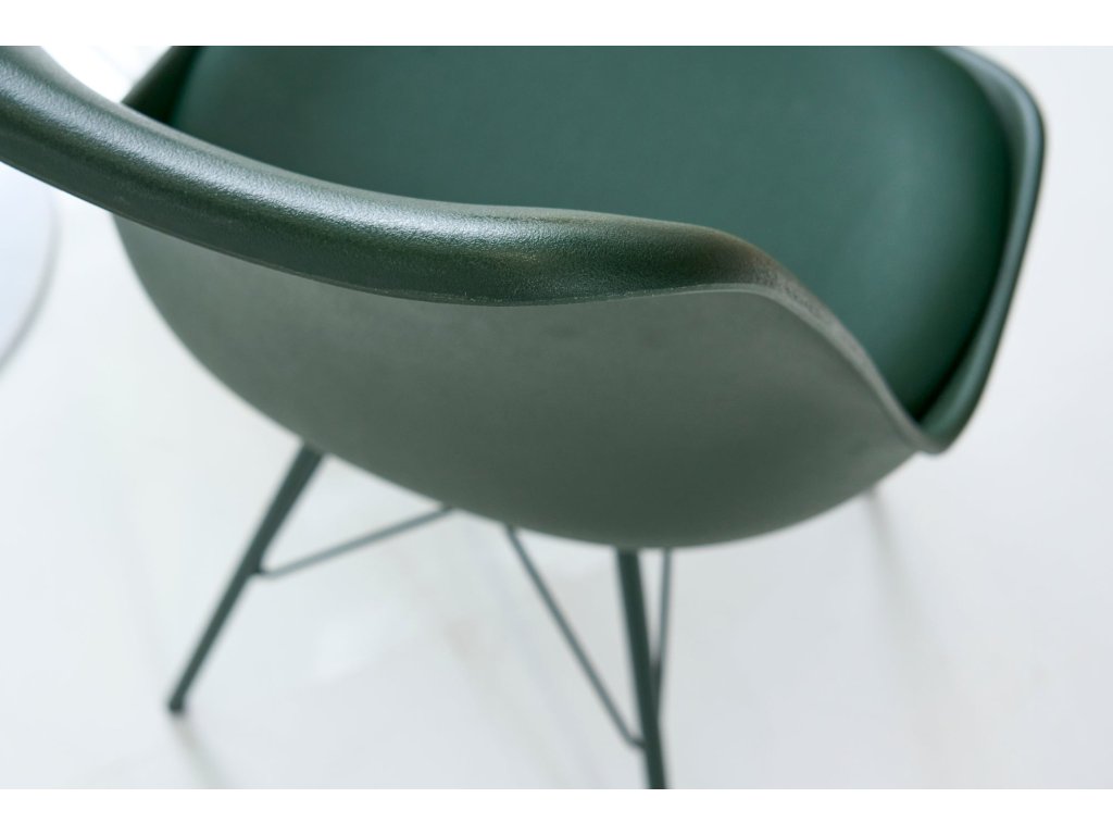 Dominantní barva sedáku: zelená dodá prostoru příjemný výraz a dobře se kombinuje s přírodními i kontrastními tóny. Design odpovídá stylu moderní, takže židle dobře zapadne do současných domácností i modernějších provozů. Povrch sedáku z materiálu nan je příjemný na dotek a při běžném používání praktický na údržbu. Konstrukce s nohami z nan přidává stabilitu a pevný posed. Židle je bez područek, díky čemuž se snadno zasune pod stůl a šetří místo u jídelního setu.
